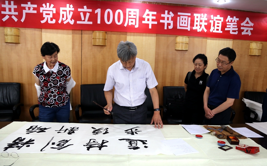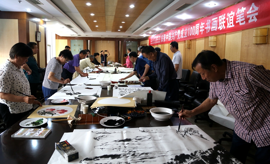 为庆祝中国共产党成立100周年,回顾党的奋斗历程,歌颂美好新时代,助力公司企业文化建设。6月24日,苏州市圣烯科技有限公司、烟台市老年书画研究会、烟台市老干部志愿者协会共同举办“庆祝中国共产党成立100周年联谊书画笔会”。本次活动共有18位县处级退休老干部书画家参加。
